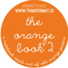 A notebook made out of old orange posters.